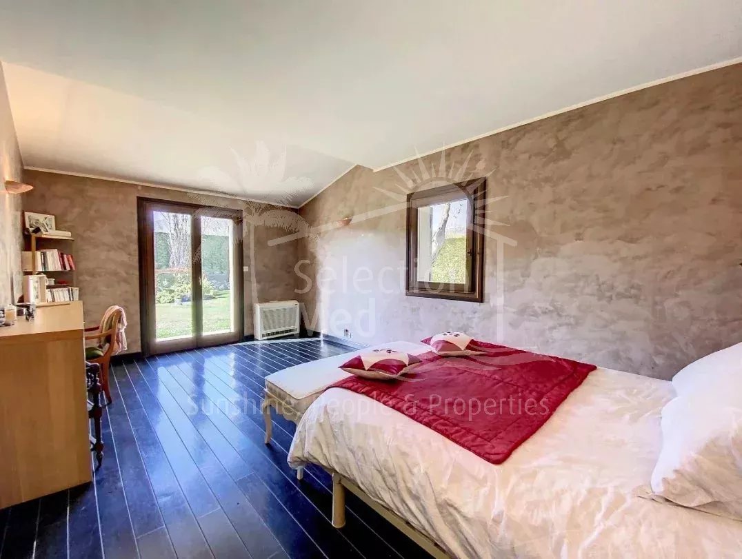 De plain-pied : un grand séjour cathédral avec une large baie à galandage ouvrant sur le jardin et une magnifique terrasse ; une cuisine équipée, une chambre indépendante, une grande suite parentale avec salle de bain et dressing.